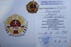 На праздничной линейке 2 сентября, посвященной началу учебного года, троим ребятам из нашего класса тожественно были вручены заслуженные золотые знаки отличия всероссийского физкультурно-спортивного комплекса ГТО III ступени.