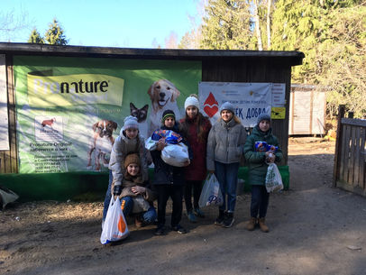 Приют содержится только на деньги благотворителей, там много крупных собак и даже 3 медведя. Каждый ребёнок привёз для животных корм или лекарства. Нам провели экскурсию по приюту, познакомили с обитателями. Затем ребята очистили площадку для дрессировки от веток, распиленных стволов деревьев. Очень старались. После этого им разрешили погулять с собаками по лесным дорогам.